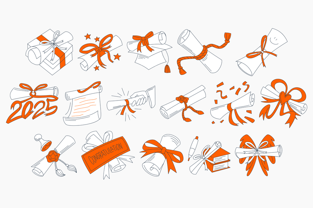 Celebrate achievements in style with the Hand Drawn Diploma Scroll Pack — a lively and charming illustration set capturing the joy of graduation moments. With playful lines and pops of orange, these scrolls, caps, and ribbons are perfect for adding a festive touch to your designs.