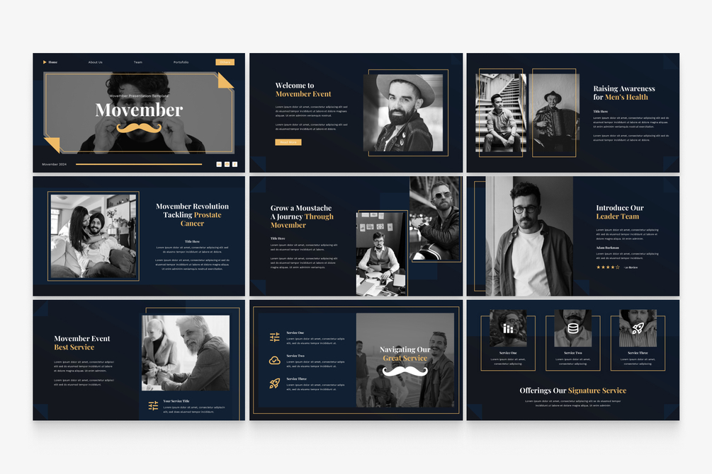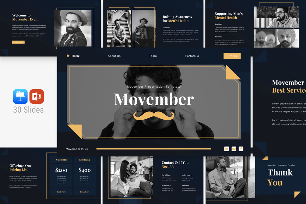 Movember - Presentation Template is a presentation/pitch deck template with professionals to make your next presentation amazing.