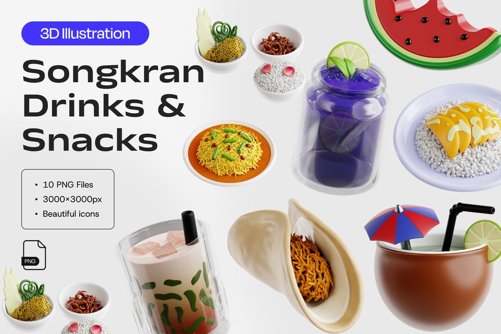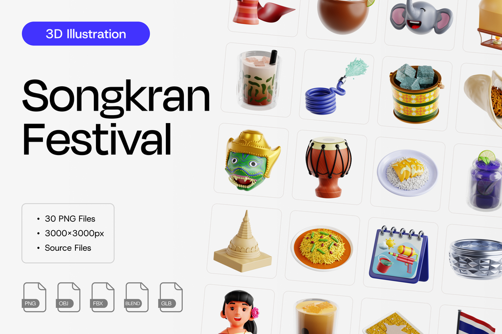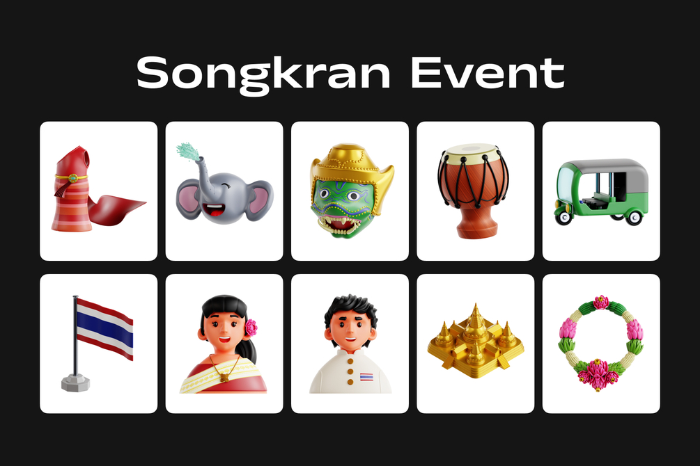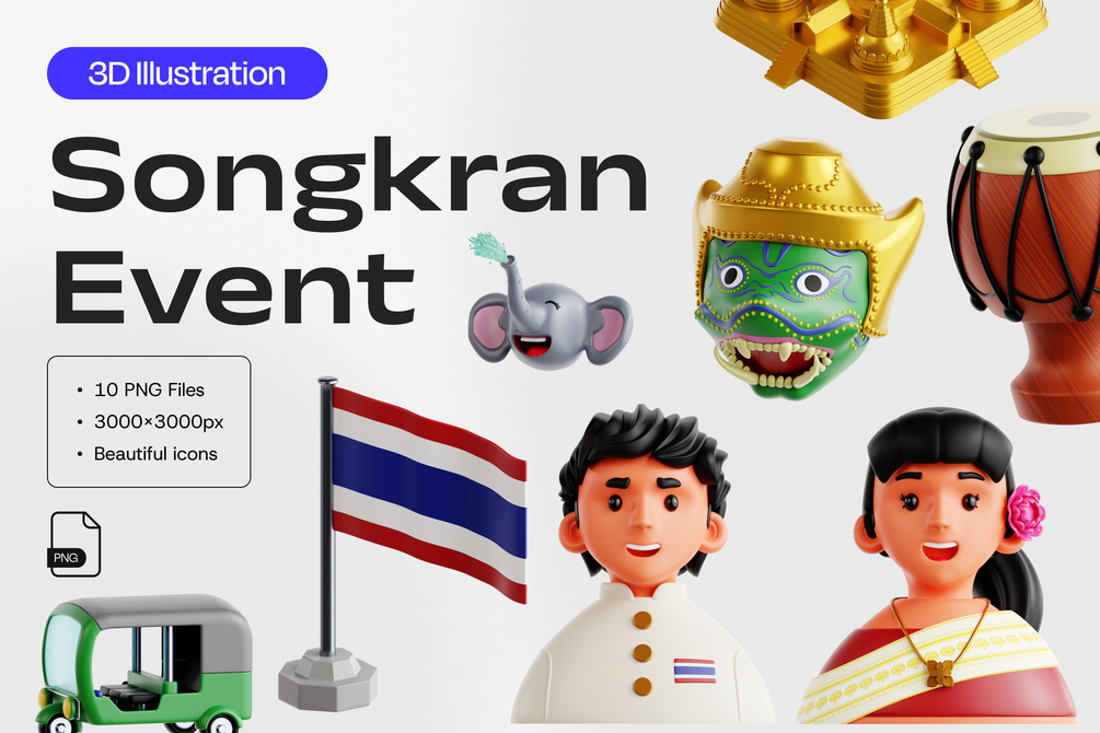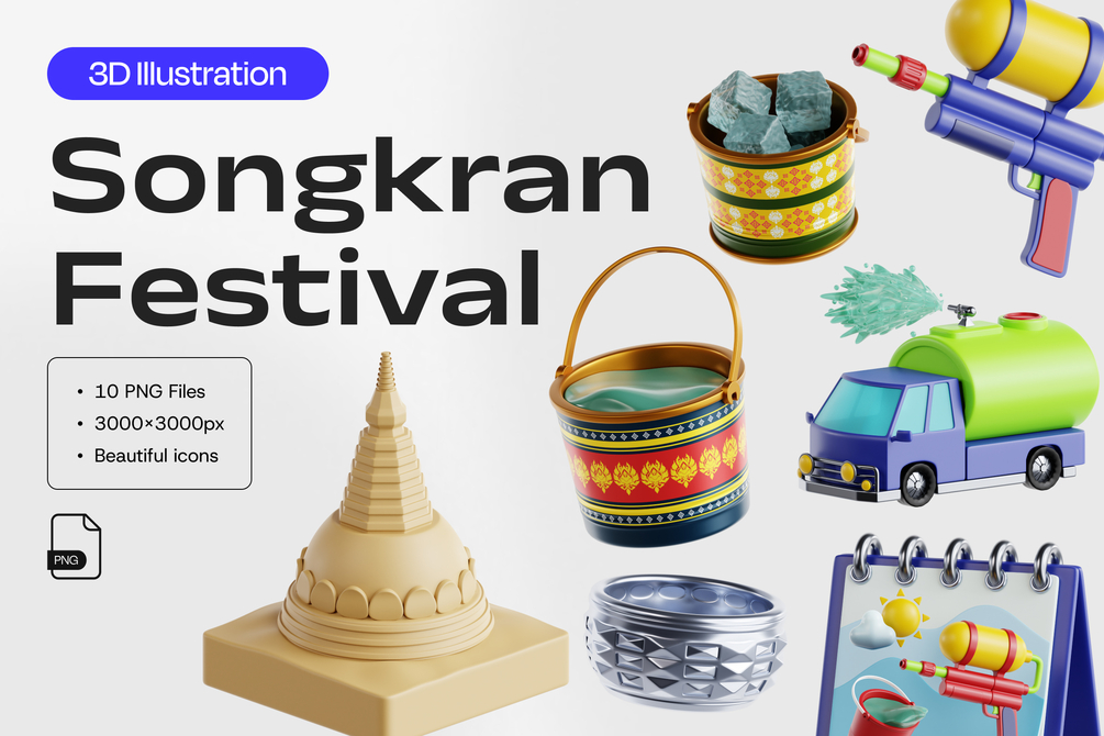 Elevate your mobile app, UI/UX, and web design projects with the Songkran Festival 3D Illustration, adding a unique and eye-catching element to your designs.